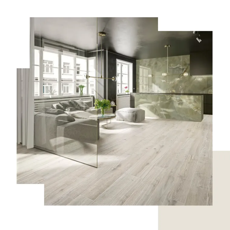 Aujourd'hui, le carrelage du sol se prolonge souvent sur le mur. L’uniformité crée un sentiment de sérénité et d’élégance. La continuité s’étend aussi de l’intérieur à l’extérieur, estompant la barrière entre les deux.