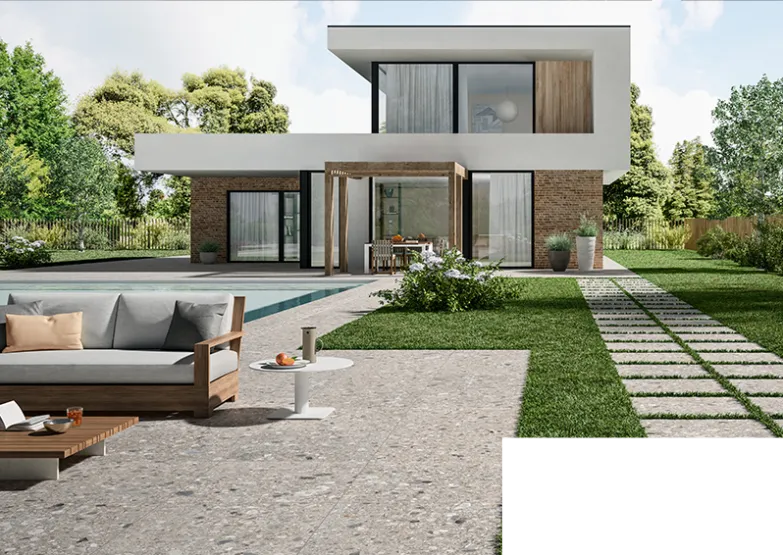 D’une épaisseur de 20 mm, nos carrelages céramiques pour l’extérieur sont extrêmement robustes (et antigel) mais aussi antidérapants. Nous proposons plusieurs solutions de carrelage durables pour votre terrasse, votre balcon ainsi que votre façade. Choisissez un carrelage intérieur et extérieur dans la même collection pour créer une harmonie jusque sur votre terrasse pour une merveilleuse sensation d’espace.