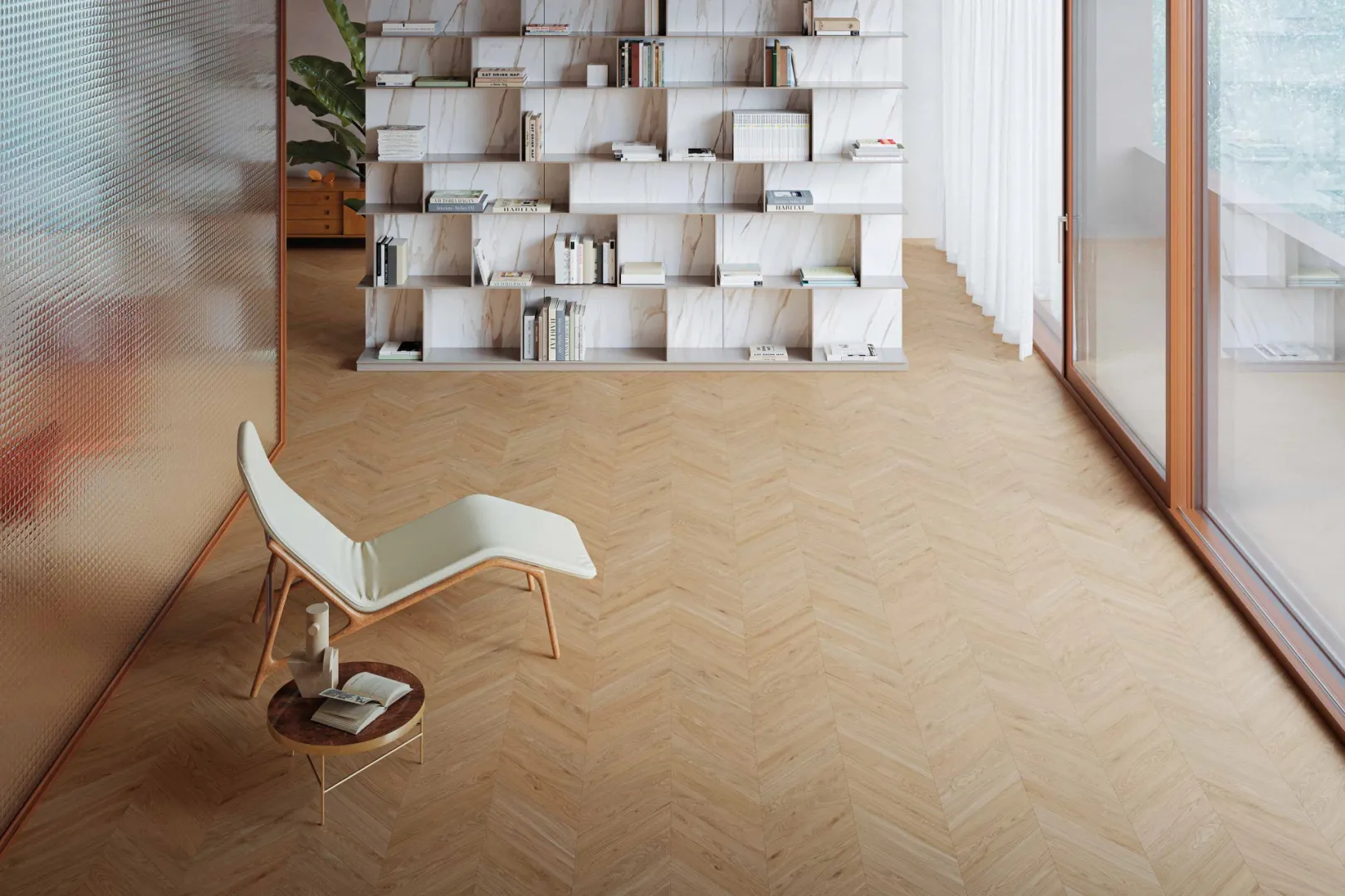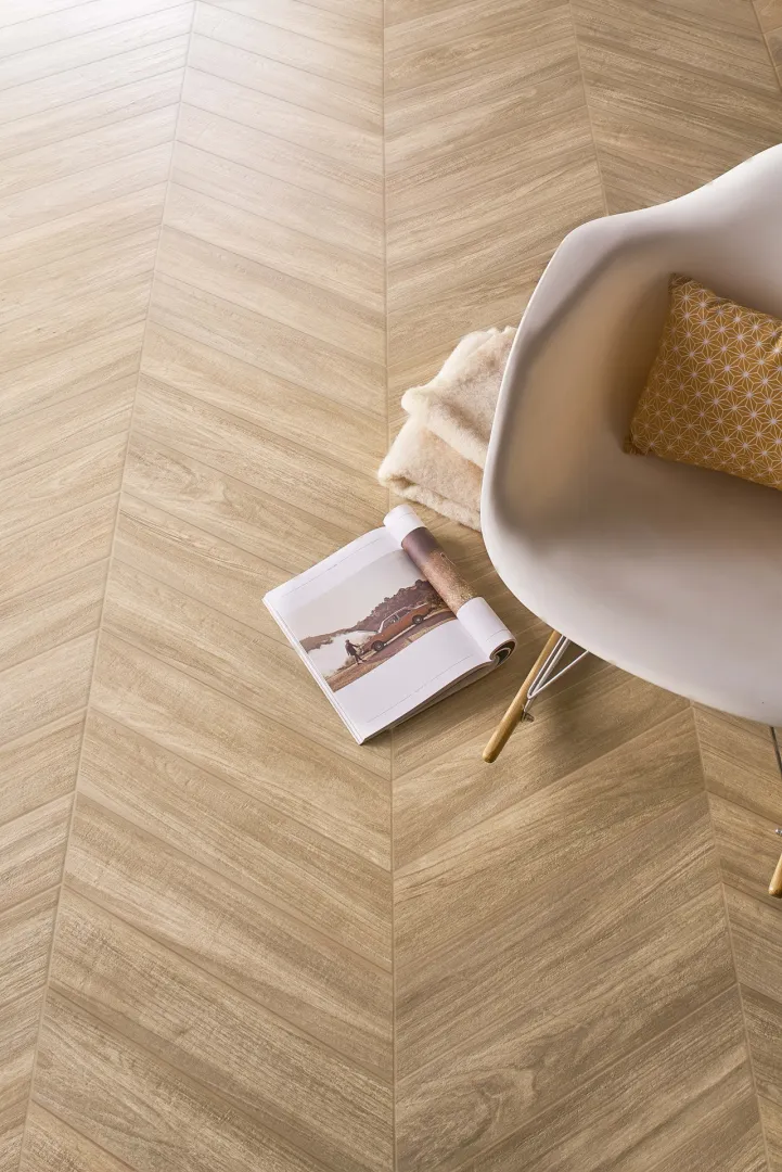 Keramisch parket is hot. Niet verwonderlijk: je vloer combineert de uitstraling van hout met alle voordelen van keramiek. Het is een esthetische én praktische designoplossing! De houtlook tegels zijn immers bestand tegen vlekvorming, slijtage en verkleuring. Ze gaan ook perfect samen met vloerverwarming. Koude voeten zijn dus voorgoed verleden tijd! En naar stijl en legpatroon kan je alle kanten uit. Planken of visgraat? Aan jou de keuze.