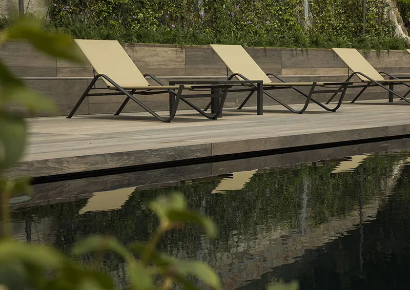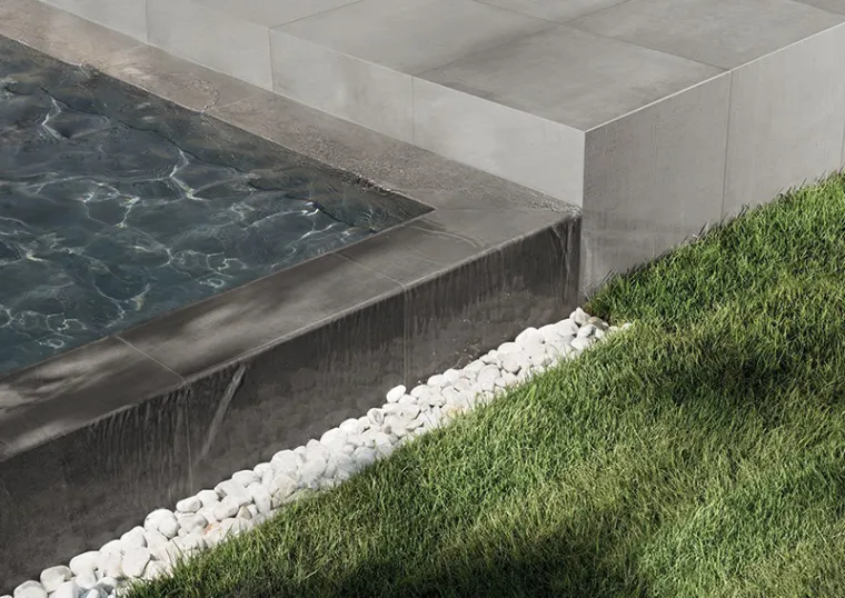 Creëer een gevoel van ruimte en harmonie door je terras, zwembad en boord te betegelen met keramische tegels binnen dezelfde collectie. Esthetisch, praktisch en dankzij de kwaliteit van keramische tegels kan je er nog jarenlang van genieten.