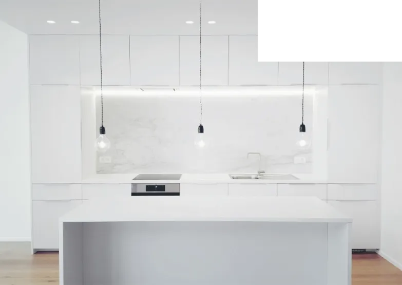 Voor het werkblad en de spatwand achter het fornuis ging de voorkeur naar keramische Superlarge tegels. “In een lichte grijs-witte tint en… zonder voegen. Dat is hygiënischer en makkelijker proper te houden”, zegt Camille.