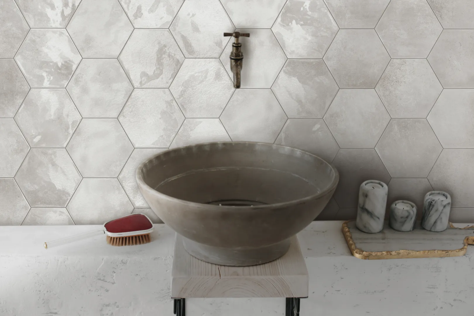 Vierkante tegels zijn altijd populair (en een veilige keuze). Ze creëren dan ook een grote harmonie in het interieur. Maar waarom eens niet andere vormen overwegen? Door te spelen met rechthoekige formaten kan je een ruimte langer doen lijken. Je geeft er een extra dimensie aan. De meer complexere vormen – denk aan een zeshoek of een parket look met Hongaarse punt – staan dan weer garant voor een unieke toets.