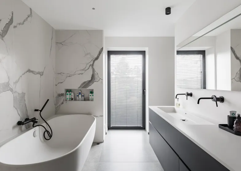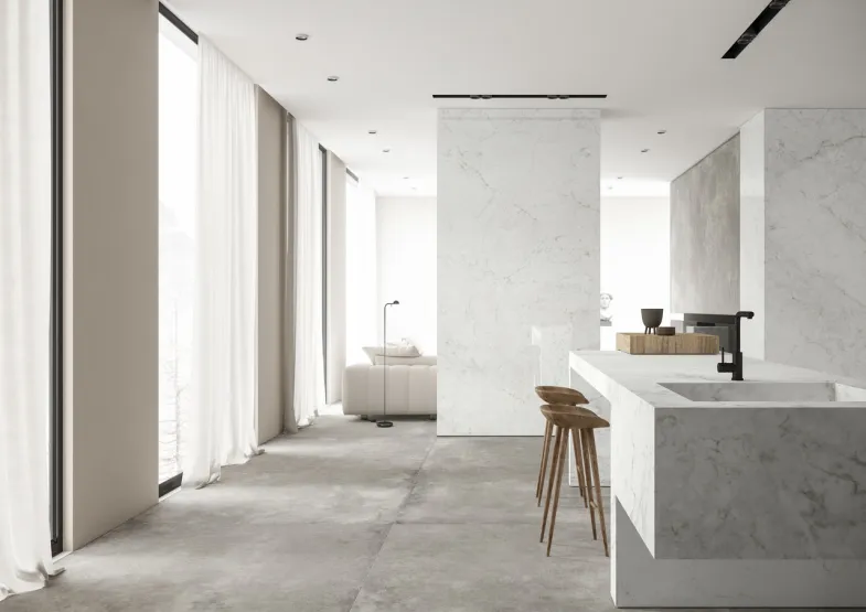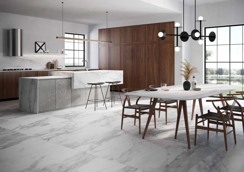 Je ziet ze steeds vaker tegen de wand of op de vloer van keukens en badkamers. Of als blad op het aanrecht, de eettafel of lavabo. Ze geven een interieur een ongezien wow-effect door de stijlvolle designs en, vooral, buitengewone afmetingen. Grootformaattegels springen eruit, in elk opzicht.