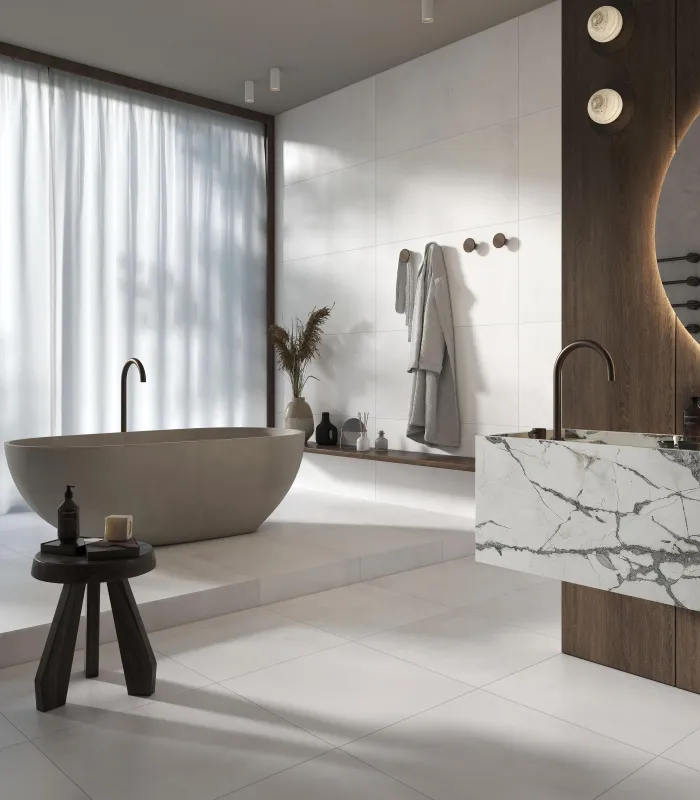 Keramische betontegels kunnen eerder egaal en strak zijn of juist zeer gewolkt en bruut van design. Ze geven een unieke toets aan elke ruimte, maar blijven wel steeds tijdloos en stijlvol.