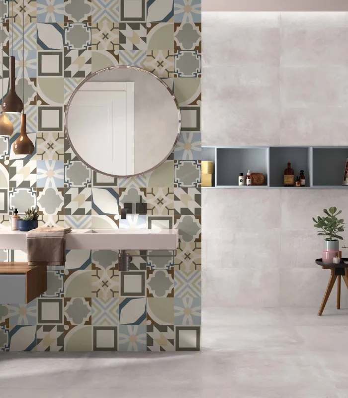 De keramische betontegel is enorm in en geeft je interieur het nodige extra pit. Deze look geeft een stoere boost aan een meer industriële stijl, maar kan in zijn uitgepuurde, strakke vorm evengoed toegepast worden in een Scandinavisch interieur.