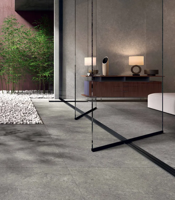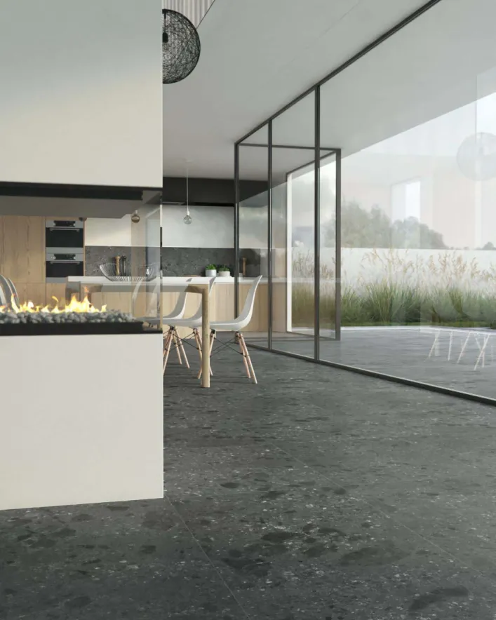 Tyles keramische tegels natuursteen look woonkamer grijs