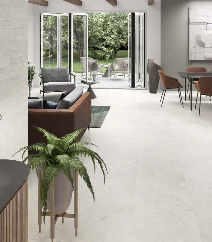 Een tegelvloer in imitatie natuursteen is een ware lust voor het oog. Deze look is aan een echte revival toe, zowel in klassieke, moderne als tijdloze interieurs. Door te kiezen voor een keramische tegel vermijd je het vele onderhoudswerk aan de poreuze steen en kan je genieten van het prachtige uitzicht van dit materiaal zonder je zorgen te maken.