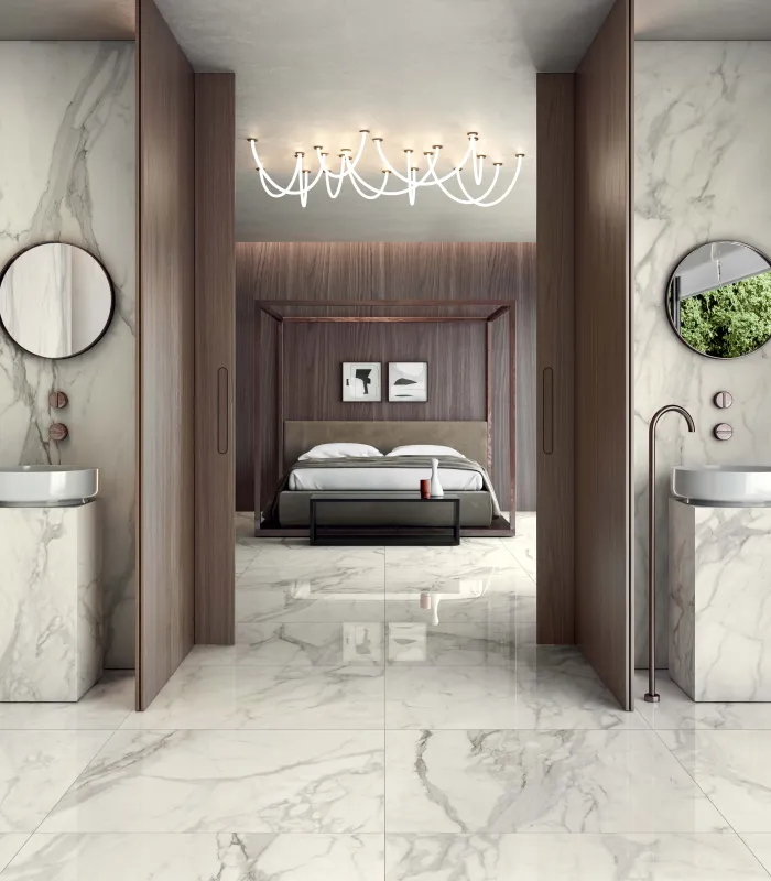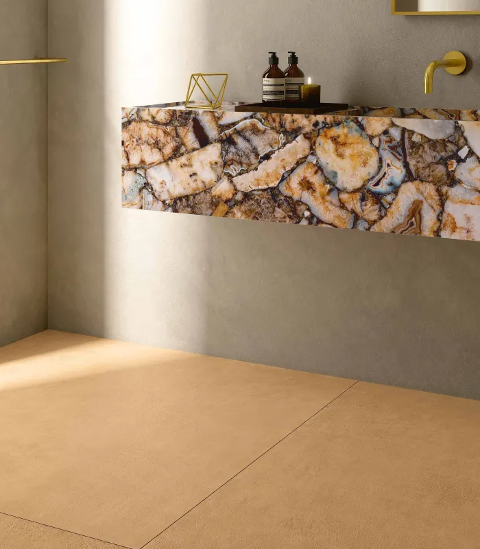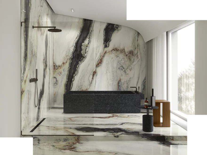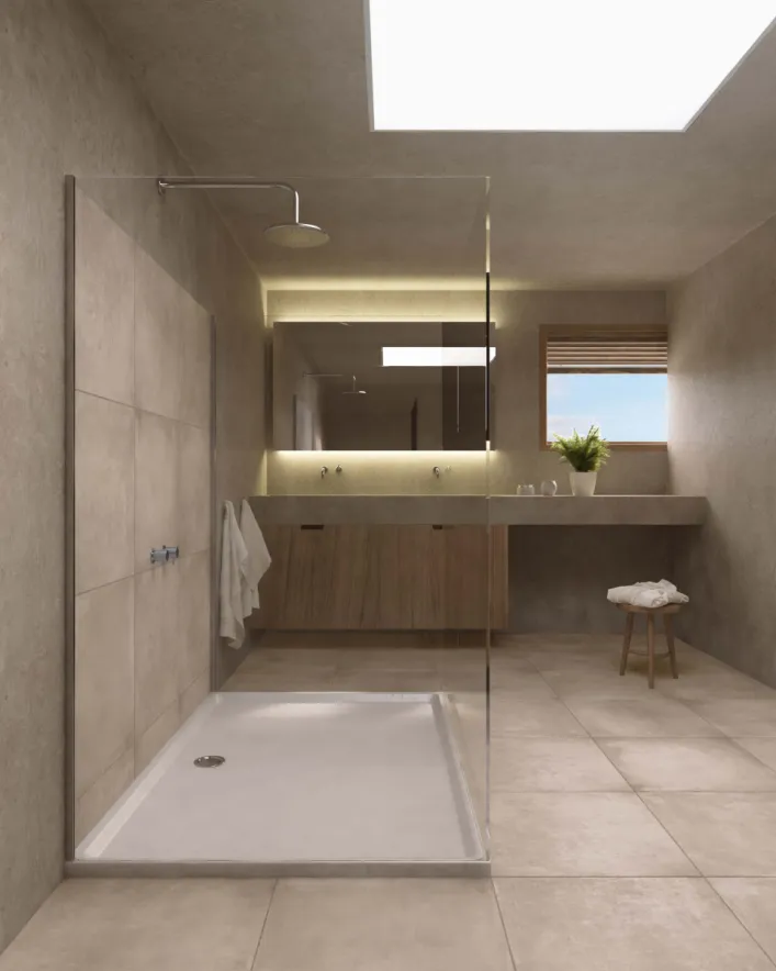 Wil je een apart effect creëren in je badkamer? Ga dan voor XXL tegels uit onze Superlarge collectie. Deze groot formaat keramische tegels zijn niet alleen uiterst geschikt als douchewand (minder voegen, makkelijk te onderhouden). Ook als vloertegels geven ze je badkamer een prachtige egale en bijzonder luxueuze uitstraling. Net dat beetje extra, dus. Laat je inspireren in onze showroom in Zellik (Brussel) of Brugge.