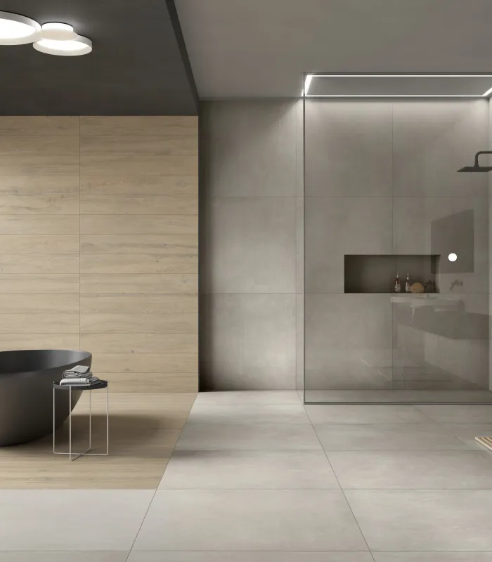 Tyles carrelages céramique salle de bain moderne sol mur gris clair
