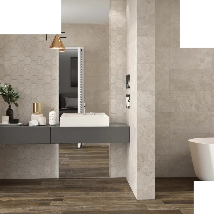 Er zijn eindeloos veel opties bij de keuze van een passende keramische tegel voor je badkamer. Mozaïek tegels zijn erg populair, vooral als accentmuur in de douche of aan je bad. Kies je voor keramische badkamertegels met structuur, dan geef je je ruimte een meer robuuste look. Je kan er ook voor kiezen om identieke wandtegels en vloertegels te gebruiken of de badkamer een groter gevoel van ruimte te geven met Superlarge tegels (XXL tegels) op de wand.