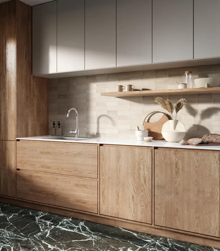 De vloer en wand in je keuken moet makkelijk zijn in onderhoud, krasvrij en vochtbestendig: alle eigenschappen van een keramische tegel. Een keukenwerkblad in marmerlook, een spatmuur in Marokkaanse tegeltjes, een vloer in een keramische parkettegel… Wij maken het keukeninterieur van je dromen werkelijkheid.