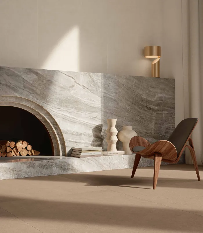 Om je woonkamer een exclusief, architecturaal karakter te geven, kan je kiezen voor een wand en/of vloer in keramische tegelplaten. Deze XXL tegels uit onze Superlarge collectie heb je in verschillende stijlen, van betonlook tot natuursteenlook, en geven de ruimte een mooi egaal aanzicht en een heerlijk groots gevoel. Wil je dat XXL effect zelf ervaren? Kom dan zeker eens langs in de Tyles showrooms te Zellik (Brussel) of Brugge.